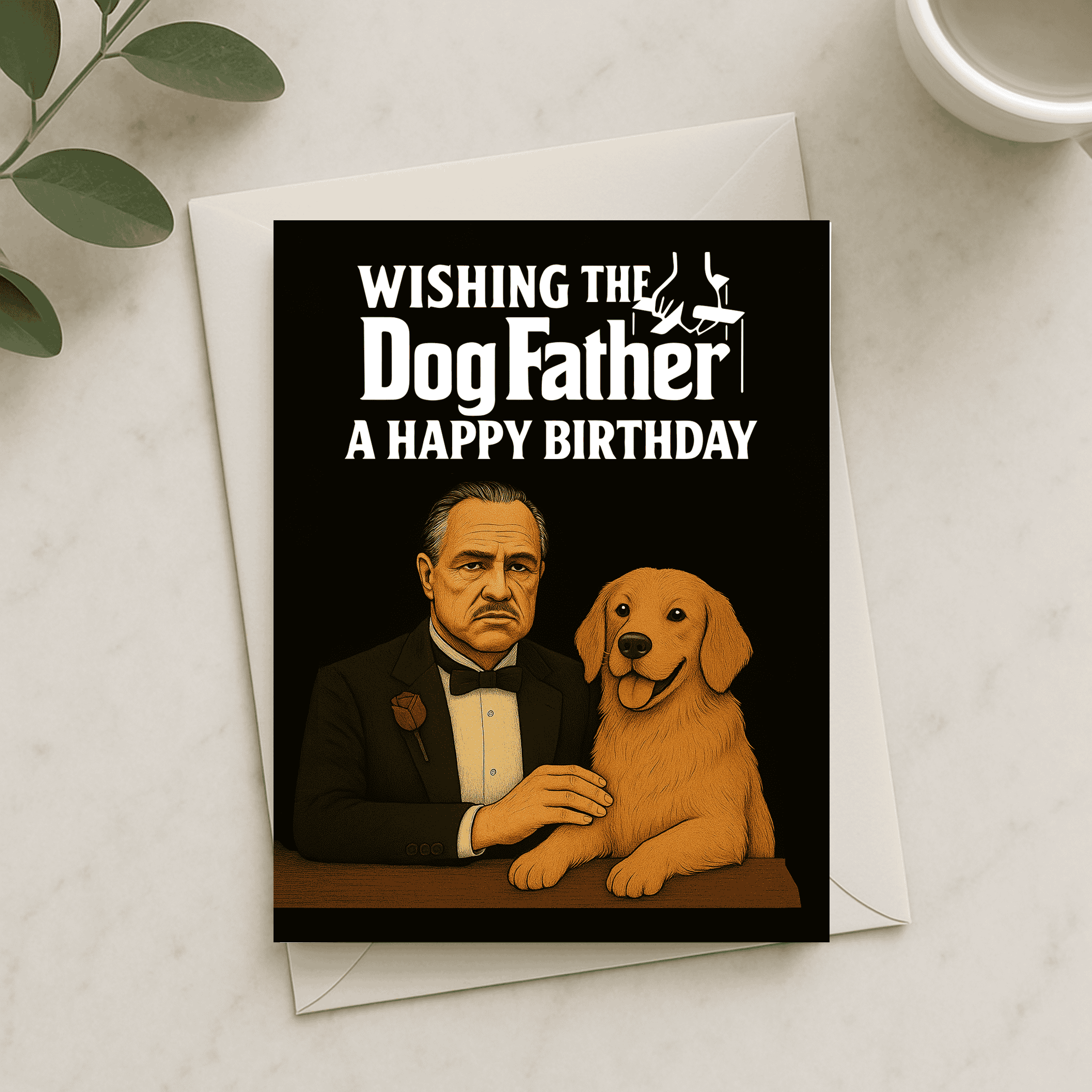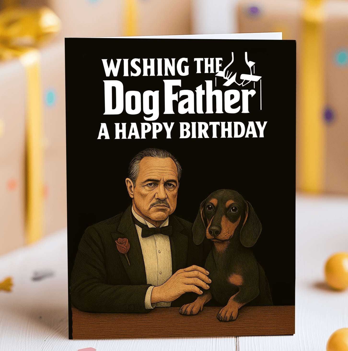A cheeky nod to The Godfather, this card features a brooding mob boss and his ever-loyal sausage dog by his side. Perfect for birthdays, Father’s Day, or just to remind him who’s boss (hint: it’s the dog).