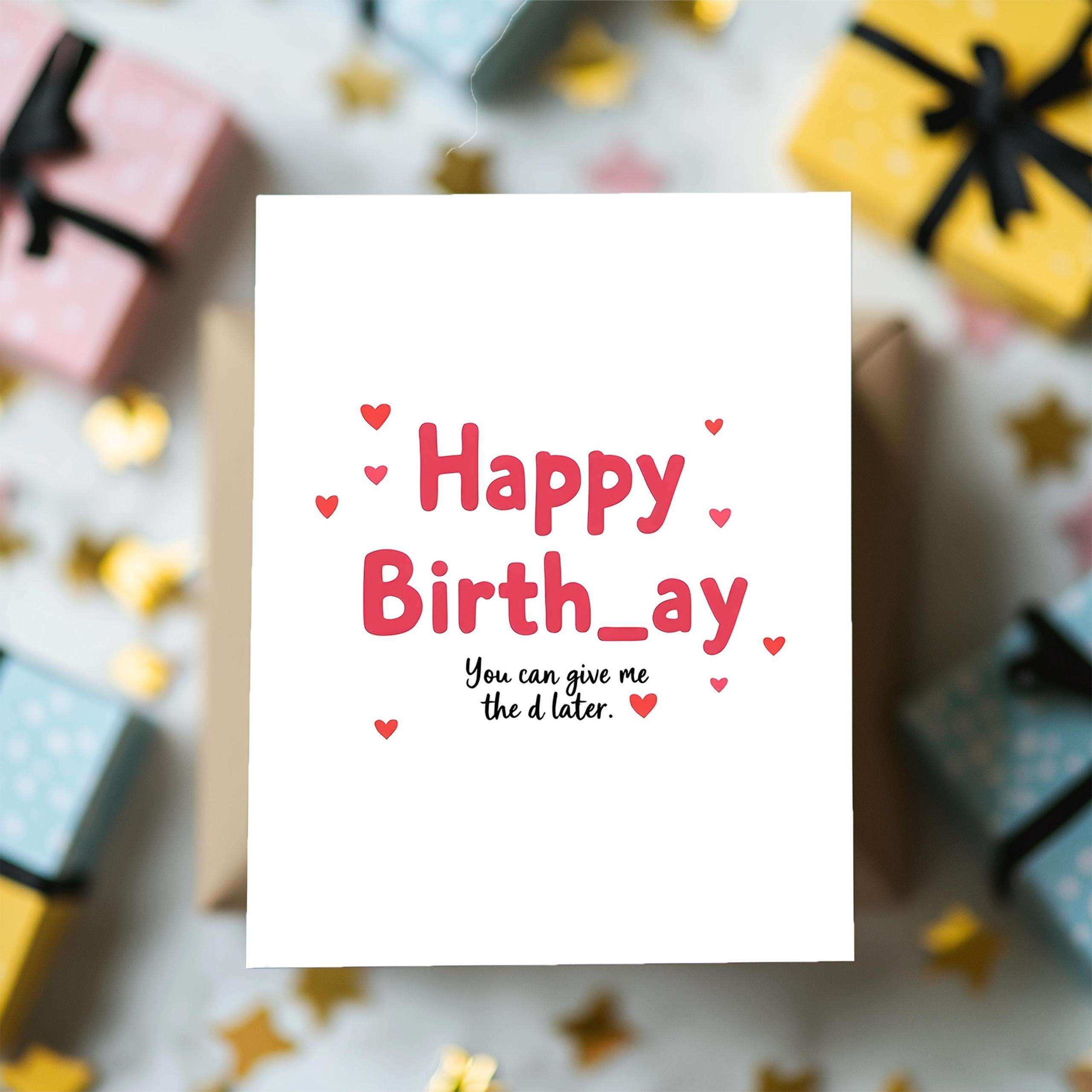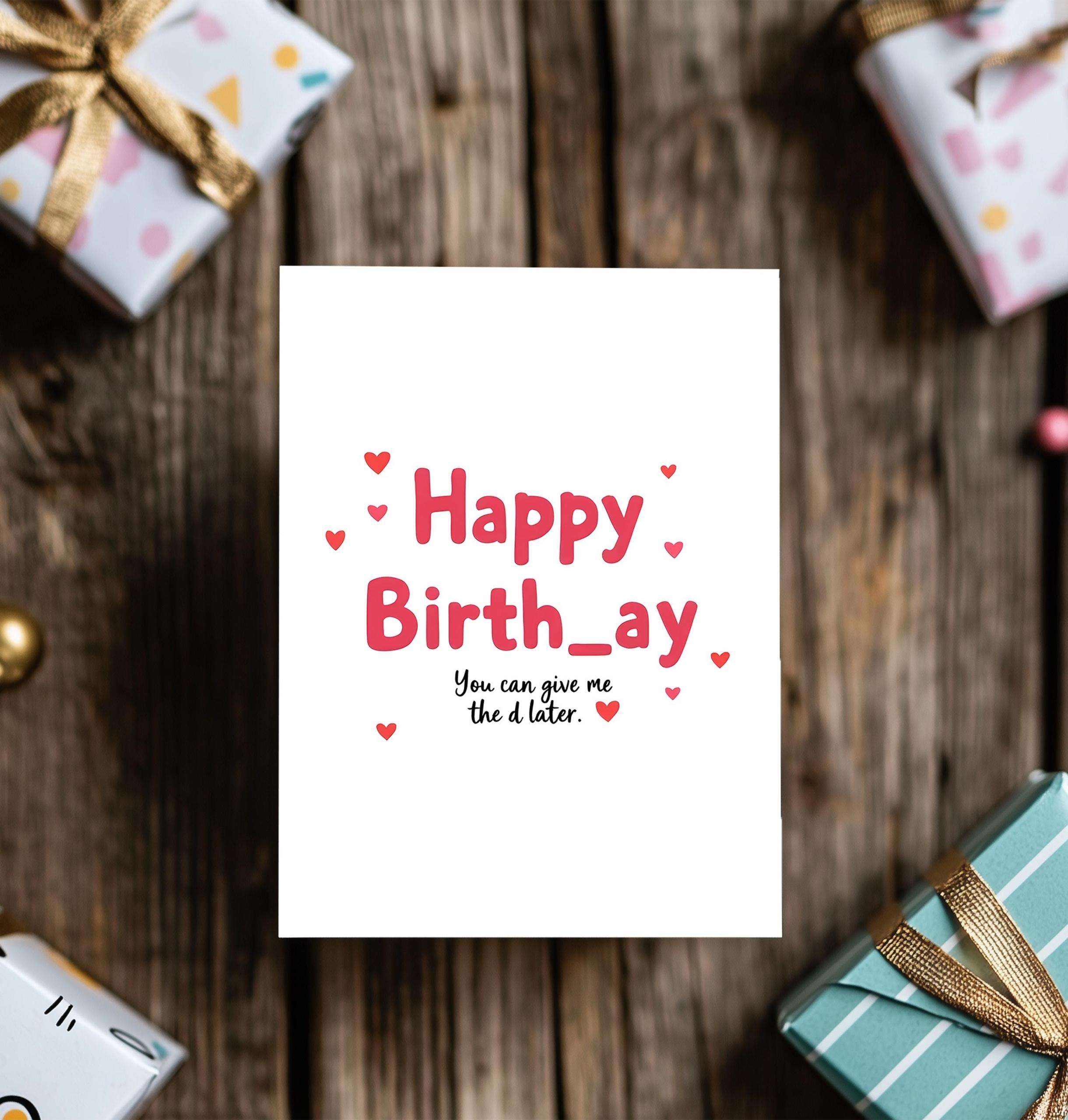 Funny Sexy Birthday Card for Him – “Happy Birth_ay, You Can Give Me the D Later”